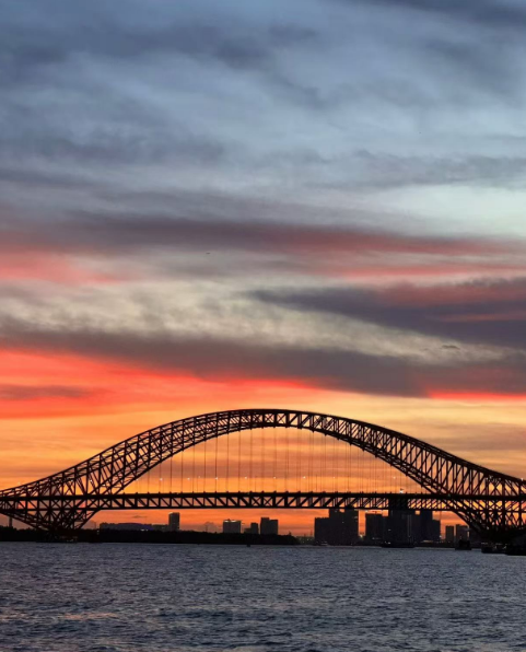 天蓝色的软底跑道、靠近海边的观景栈道,晴天可以骑行、露营、放风筝,最绝的是日落时分!夕阳把海面染成橘子色,云层像被撒了金粉。